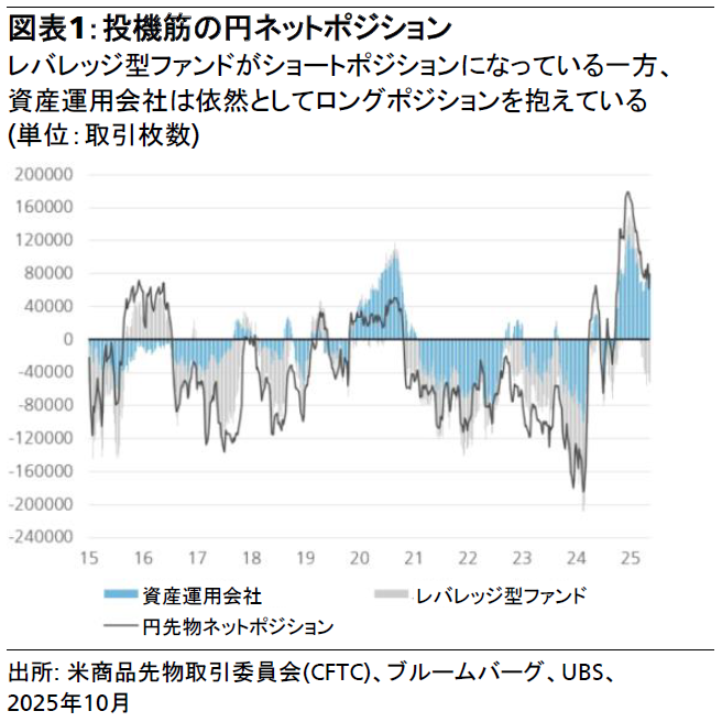 短期的には、ドル円が155円まで上昇する可能性も否定できない。市場が高市氏の政策が明確になるのを待つ中、投機的な円のロングポジション(買い持ち)の解消が続く可能性がある。特に、レバレッジ型ファンドが既にショートポジション(売り持ち)になっている一方で、資産運用会社は依然として大きなロングポジションを抱えている。