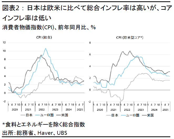 物価について、総合インフレ率は米国やユーロ圏と比べて高いが、徐々に鈍化している。輸入価格の影響が小さく、ファンダメンタルズ(基礎的諸条件)をより反映させたコアインフレ率は前年比1.6%と、米国やユーロ圏より低い。日本の政策金利は依然として中立金利を下回り、金融政策は緩和的であるため、インフレ期待が高まる中でコアインフレ率が2%に達していなくても、日銀は緩和縮小を段階的に進められると考える。コアインフレ率が2%未満であるため、日銀は利上げを急ぐ必要はなく、政策決定は引き続きマクロ経済のファンダメンタルズに基づくべきだと考える。