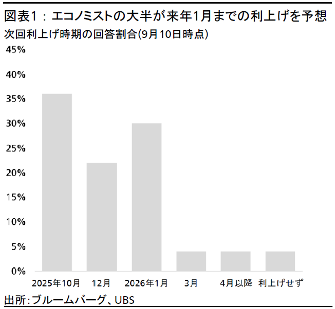 しかし、最近の関税合意により不確実性が後退し、企業が価格転嫁などで適応することで、来年初から企業収益の回復などによる景気回復が期待される。第3四半期の国内総生産(GDP)と企業業績を確認し、第4四半期の月次経済指標や日銀短観による企業マインドを見極めた上で、日銀は12月または遅くとも翌1月から利上げサイクルを再開すると予想する。