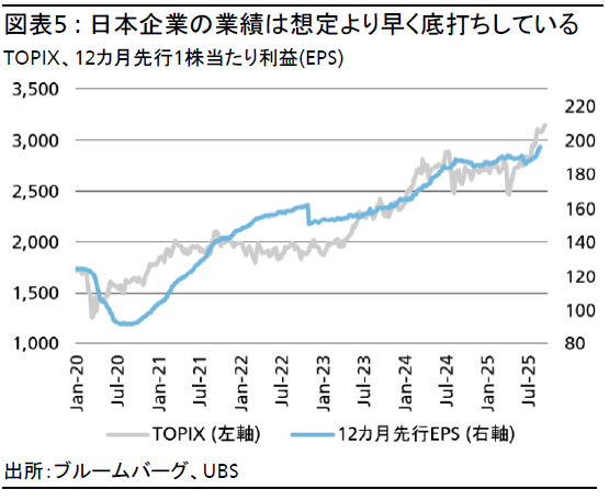 - 主なポジティブ材料としては、次期政権では現政権よりも緩和的な政策が予想されることや、企業業績のコンセンサス予想が想定より早く底打ちしてきたこと、自己資本利益率(ROE)の上昇によるバリュエーションの拡大期待などが挙げられる。