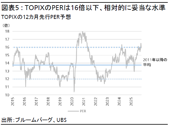 - 2026年に向けても、日本株はAttractive(魅力度が高い)との見方を継続する。日本株は9-10月の上昇の後、AI投資の収益化への懸念、12月の米連邦公開市場委員会(FOMC)における利下げ期待の後退、日中関係の悪化を受け、11月の上昇分のほとんどを吐き出した。