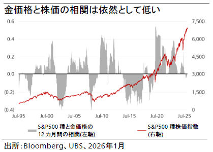 現在の金相場は強気相場の中盤から後半にあり、安定した上昇基調から、新高値を付けつつも5-8%程度の断続的な下落を伴う局面に移行しているとみている。歴史的に金の強気相場の終焉と関連する「実質金利の高止まり」「米ドルの構造的な強さ」「地政学リスクの後退」「中央銀行への信認の完全な回復」といった要因は、現時点ではまだ見られない。